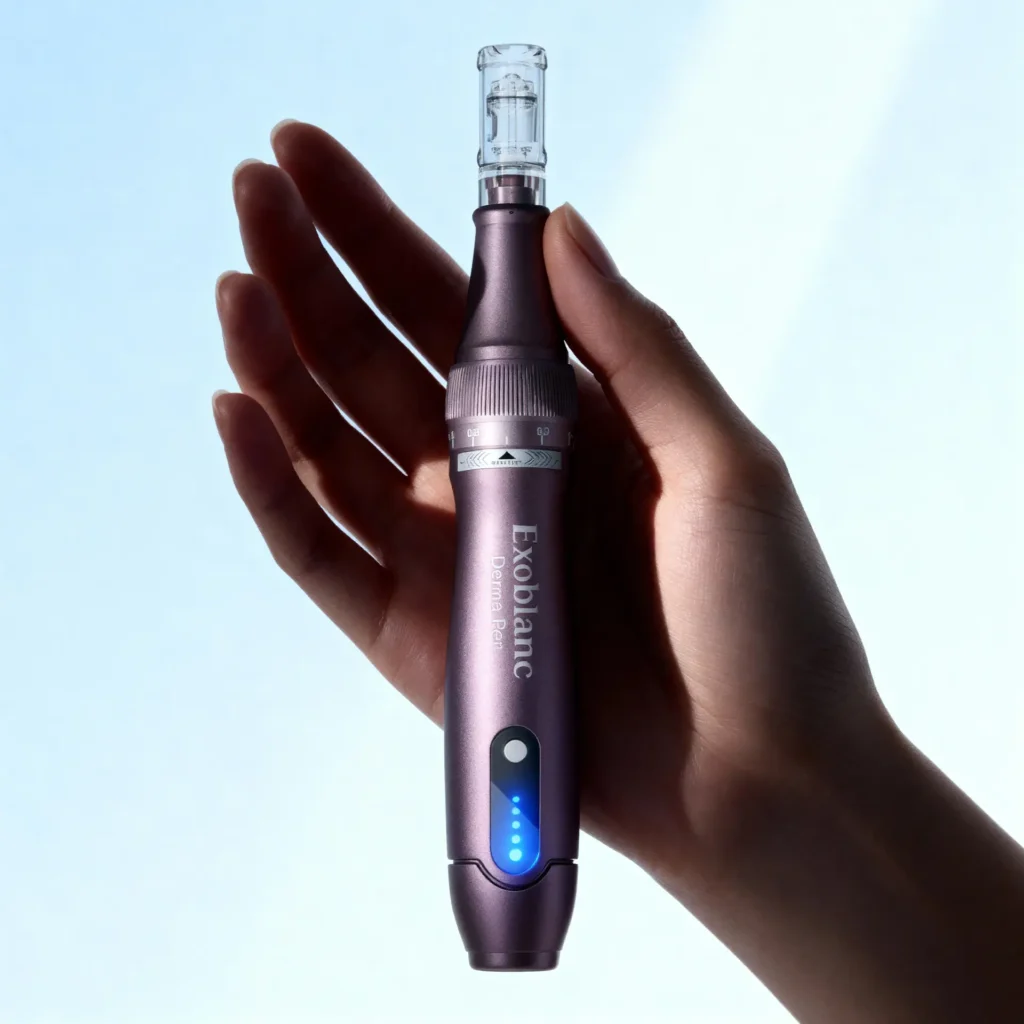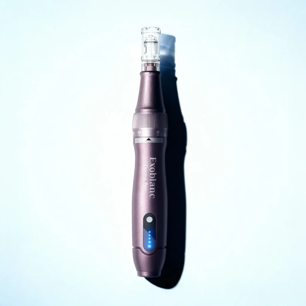 The Exoblanc Derma Pen is a professional and self-care microneedling device designed to enhance skin rejuvenation, collagen stimulation, and absorption of skincare products. It promotes smoother, firmer, and healthier-looking skin through precise, controlled micro-perforations that trigger natural renewal.
