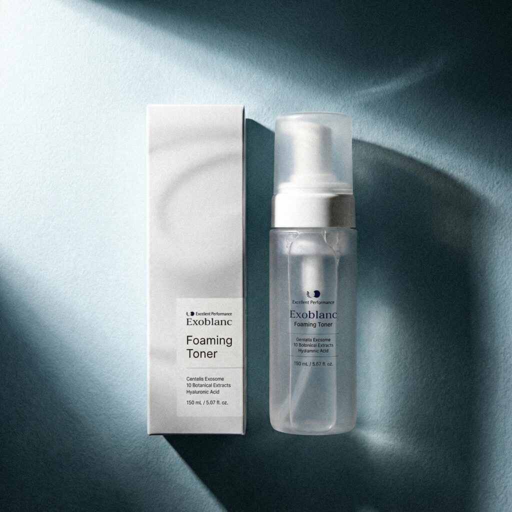The CICA Exosome used in Exoblanc Foaming Toner is derived from Centella asiatica, a plant long prized in traditional medicine for its regenerative and calming properties. It stimulates natural repair mechanisms and supports the skin’s barrier function.