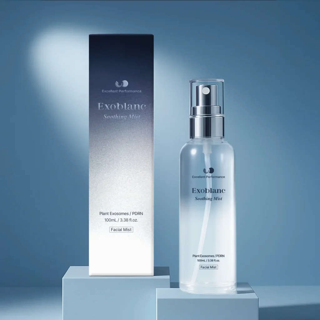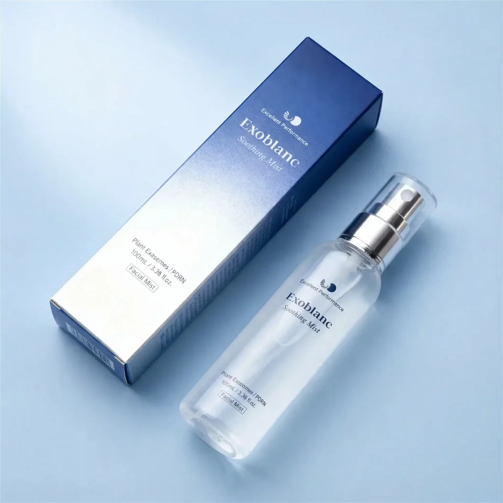 Exoblanc Soothing Mist is a high-performance calming and hydrating facial mist formulated with advanced exosome technology, marine-derived PDRN, and purifying hypochlorous acid. Designed especially for sensitive and stressed skin, it delivers a fine, refreshing spray that instantly cools, moisturizes, and revitalizes.